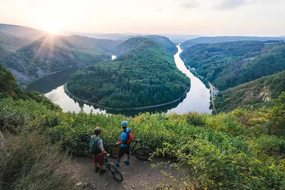 Wollscheidtrails, Andis Trail, Edis Trail und die bekannten Singletrails am Schloss Ziegelberg und rund um die Mettlacher Lutwinus Siedlung – die Mitteldistanz glänzt mit schönen Technikabschnitten aber auch mit vielen tollen Aussichten.